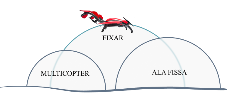 Specifiche tecnichei vantaggi di FixarTECH SPECS VOLO AUTONOMO DECOLLO ATTERRAGGIO VERTICALE 120 KM/H VELOCITA MASSIMA TEMPO DI VOLO 60 MINUTIHARDWARE VTOL ad ala fissaaPERTURA ALARE 1640 mm 4 ROTORI PESO AL DECOLLO 7 kg Portata massima della telemetria
