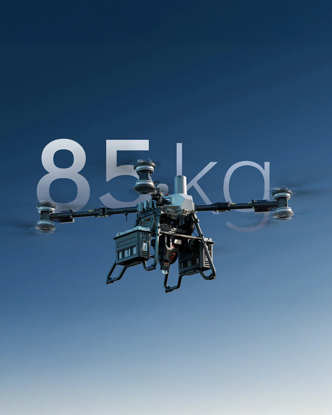 DJI FC 100 è progettato per massimizzare l’efficienza operativa, l’FC100 offre fino a 85 kg di payload con doppia batteria (e supporta anche la modalità a batteria singola per scenari di emergenza). I dati di prestazione DJI indicano 149,9 kg di peso al decollo, una distanza massima di volo fino a 12 km in dual-battery (e 6 km in single-battery) in condizioni di test specifiche.