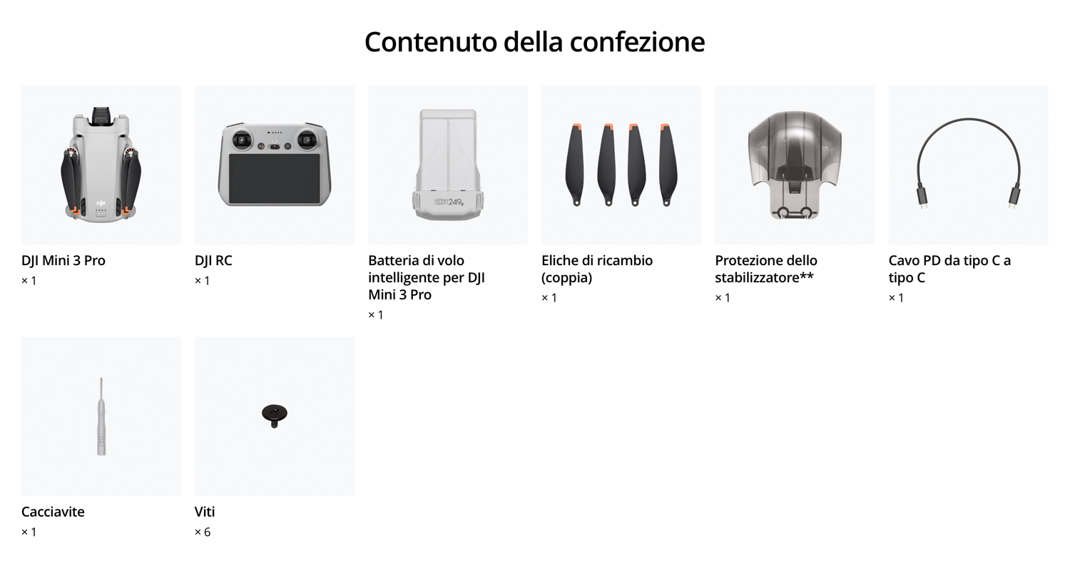 - Richiede l’acquisto di DJI Mini 3 Pro (versione DJI RC)